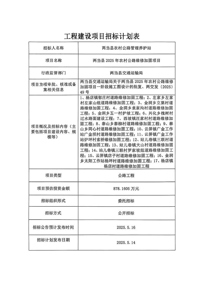 兩當(dāng)縣2025年農(nóng)村公路維修加固項(xiàng)目