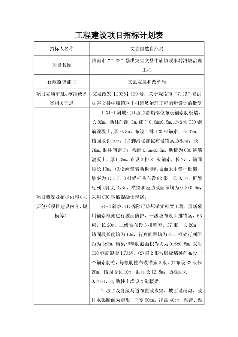 附件:隴南市“7.22”暴洪災(zāi)害文縣中廟鎮(zhèn)聯(lián)豐村滑坡治理工程招標(biāo)計(jì)劃表.pdf