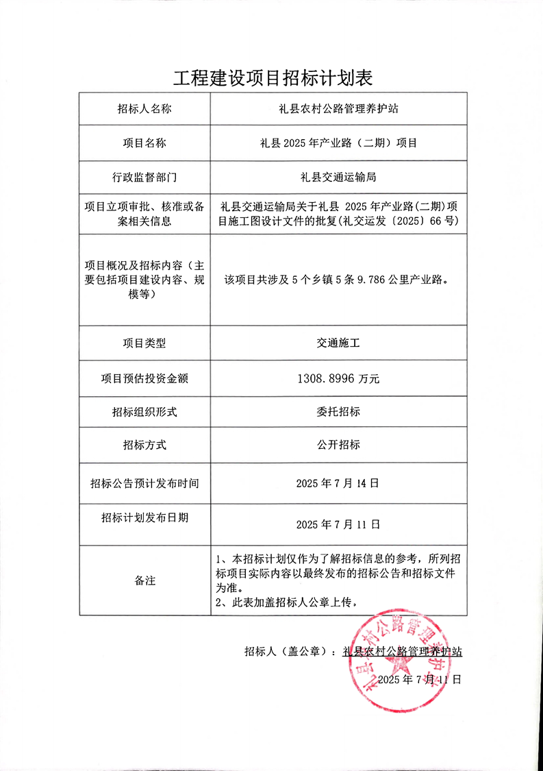 禮縣2025年產(chǎn)業(yè)路(二期)項目