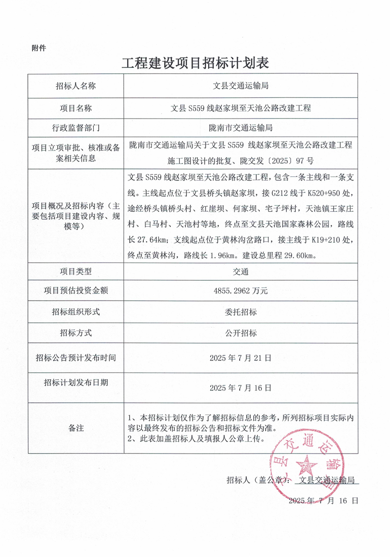 文縣S559線趙家壩至天池公路改建工程工程招標計劃表.pdf
