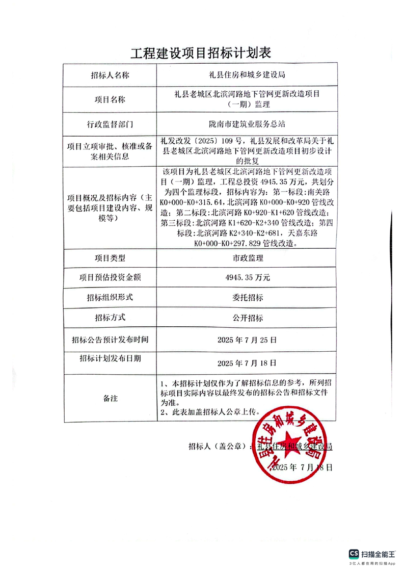 禮縣老城區(qū)北濱河路地下管網(wǎng)更新改造項目(一期)監(jiān)理