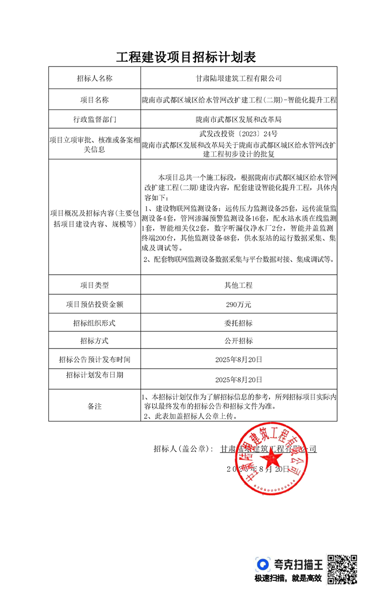 隴南市武都區(qū)城區(qū)給水管網(wǎng)改擴(kuò)建工程(二期)-智能化提升工程