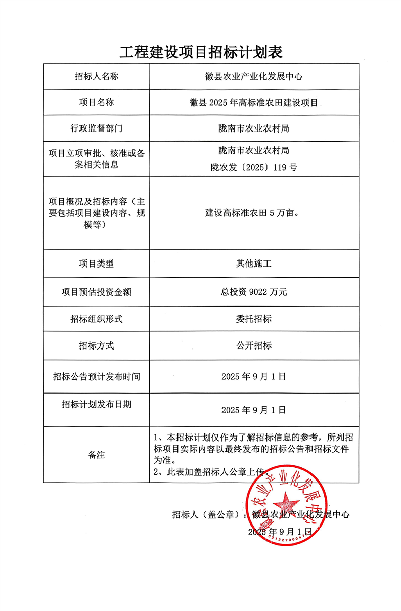徽縣2025年高標(biāo)準(zhǔn)農(nóng)田建設(shè)項目