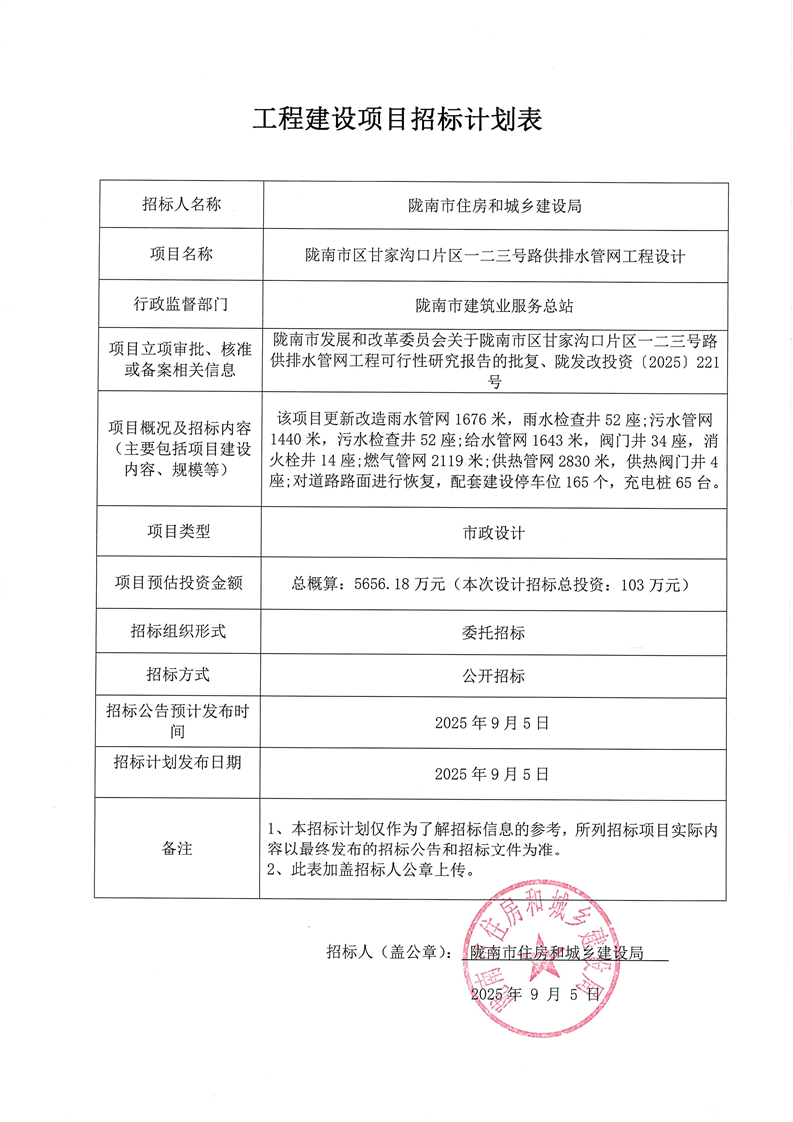 隴南市區(qū)甘家溝口片區(qū)一二三號(hào)路供排水管網(wǎng)工程設(shè)計(jì)