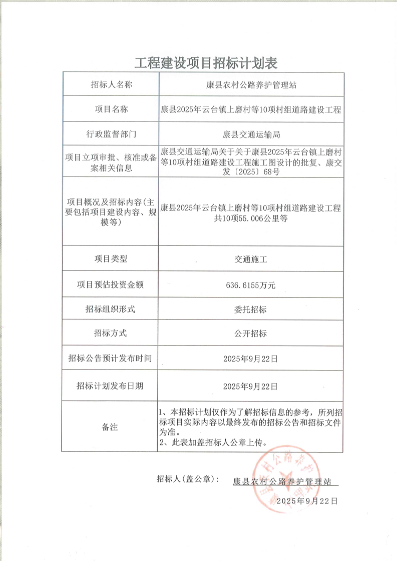 康縣2025年云臺鎮(zhèn)上磨村等10項村組道路建設(shè)工程