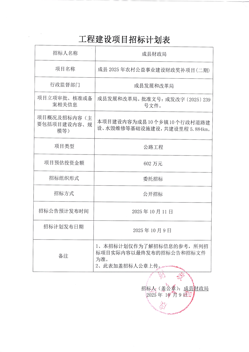 成縣2025年農(nóng)村公益事業(yè)建設(shè)財政獎補(bǔ)項目(二期)