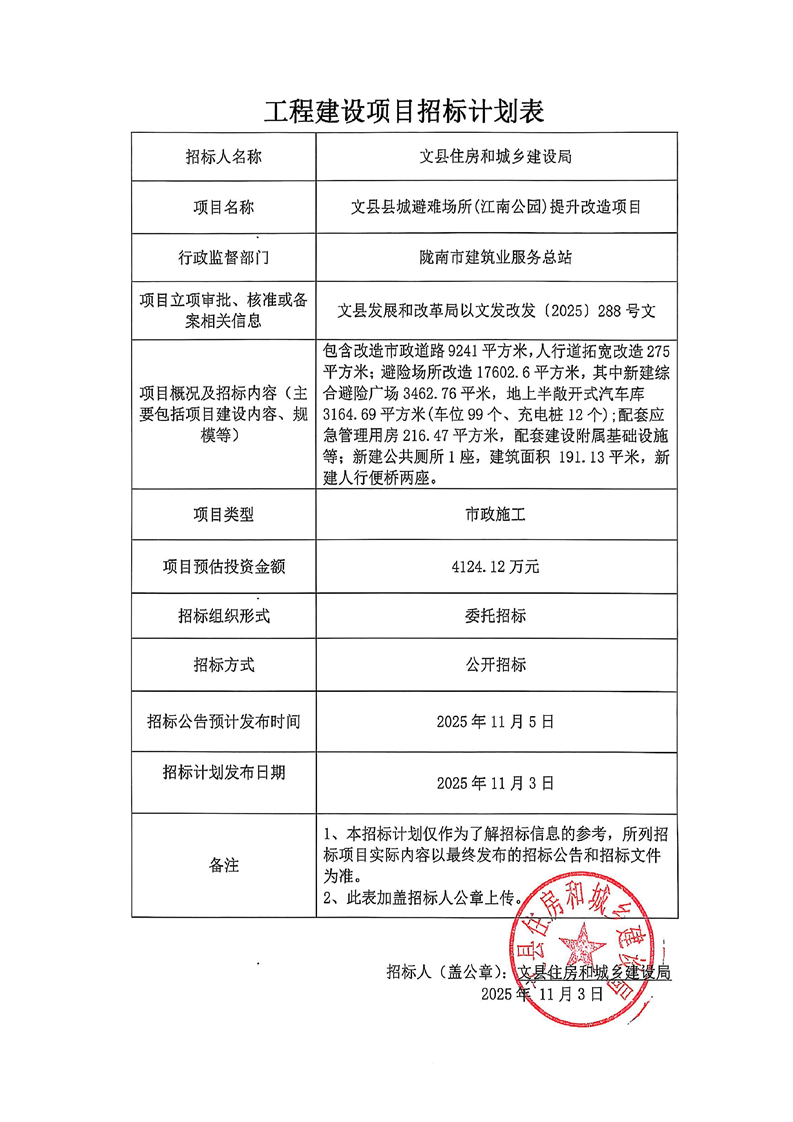 文縣縣城避難場所(江南公園)提升改造項(xiàng)目