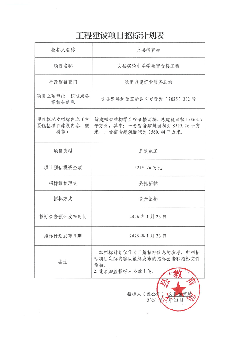 文縣實驗中學學生宿舍樓工程