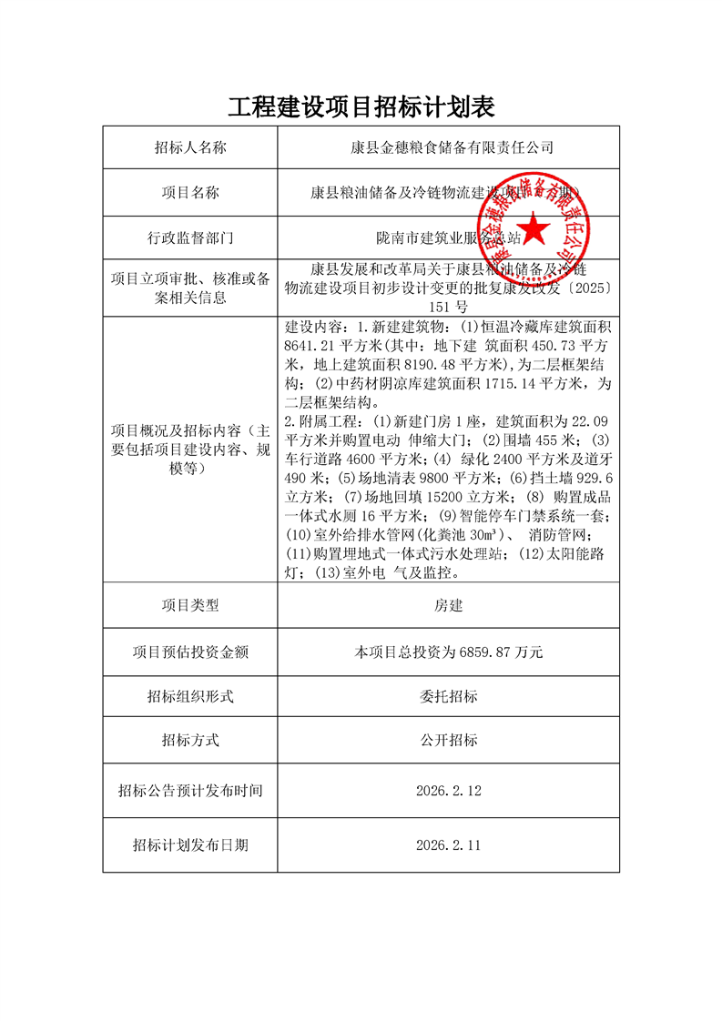 康縣糧油儲備及冷鏈物流建設項目(二期)
