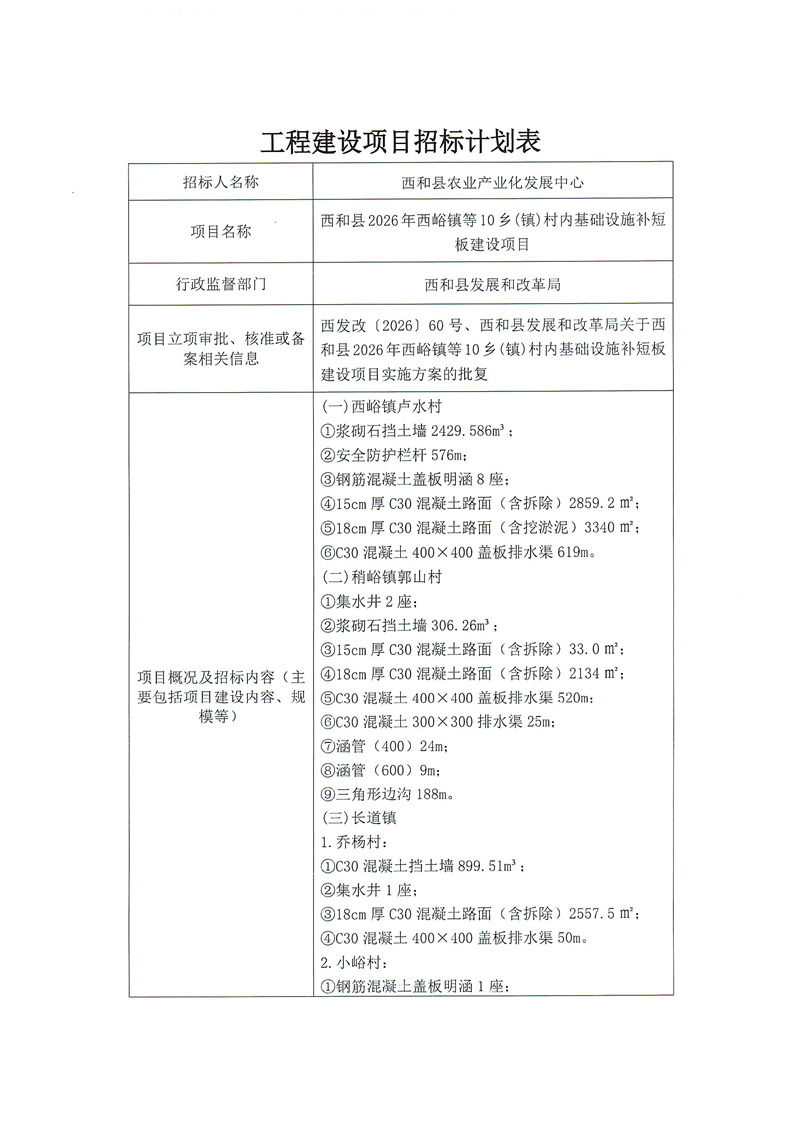 西和縣2026年西峪鎮(zhèn)等10鄉(xiāng)(鎮(zhèn))村內(nèi)基礎(chǔ)設(shè)施補短板建設(shè)項目