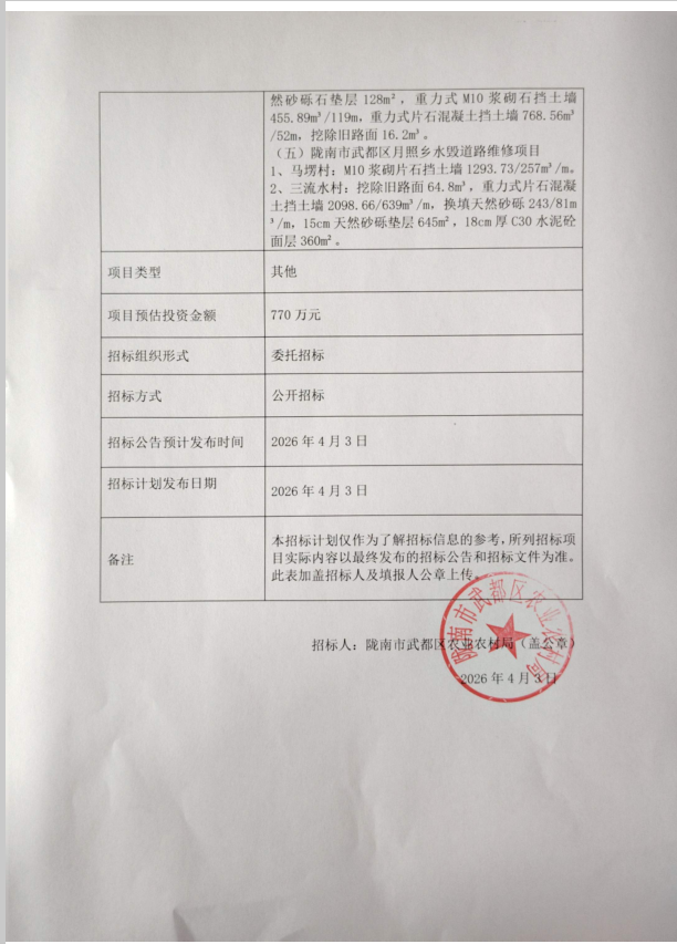 隴南市武都區(qū)五馬琵琶楓相三倉(cāng)月照基礎(chǔ)設(shè)施補(bǔ)短板建設(shè)項(xiàng)目