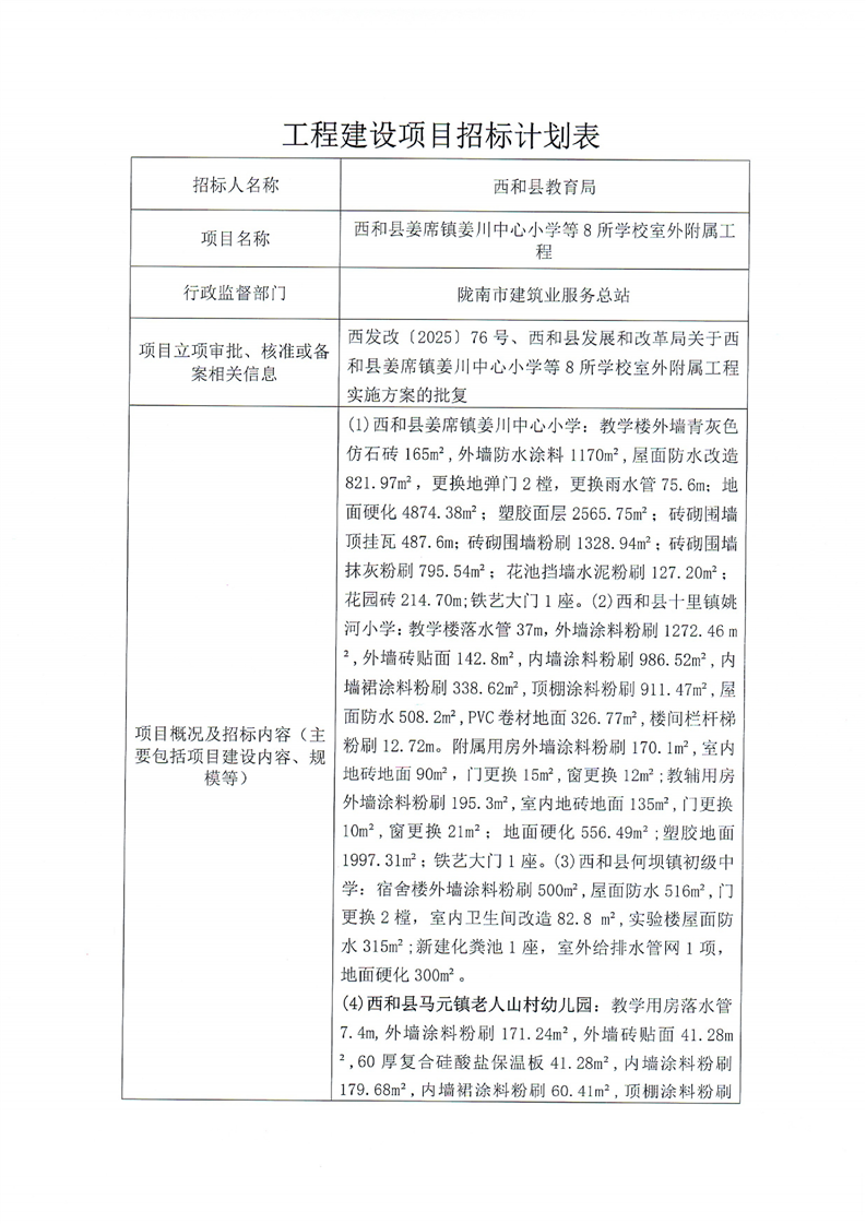 西和縣姜席鎮(zhèn)姜川中心小學(xué)等8所學(xué)校室外附屬工程