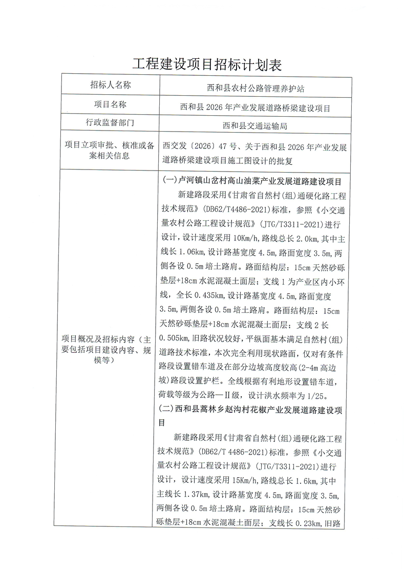 西和縣2026年產(chǎn)業(yè)發(fā)展道路橋梁建設(shè)項(xiàng)目