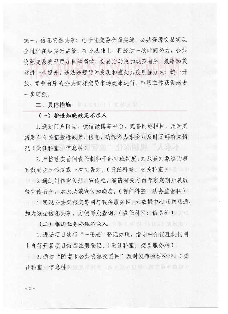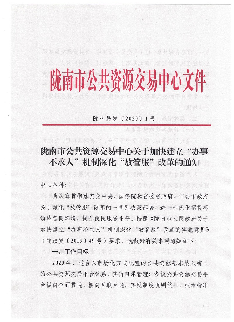 隴南市公共資源交易中心關(guān)于加快建立“辦事不求人”機(jī)制深化“放管服”改革的通知