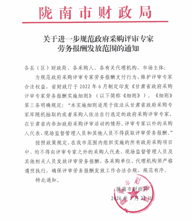 關于進一步規(guī)范政府采購評審專家勞務報酬發(fā)放范圍的通知